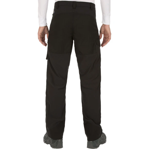 The rear and knees are pre-shaped for the best possible fit and the waist is lower in the front and higher in the back to fit comfortably when carrying a backpack. An extra piece of fabric in the crotch and the placement of the inseams decrease the risk for rubbing. The zippered hand pockets are placed for easy access even when wearing a hip belt. Large leg pocket with flap and a smaller mesh inner pocket on the right leg, a small pocket for a mobile telephone or GPS on the left leg. Stretch in the lower back and G-1000 reinforcements at the rear, knees and leg endings. Raw length that can be easily adjusted to your height.